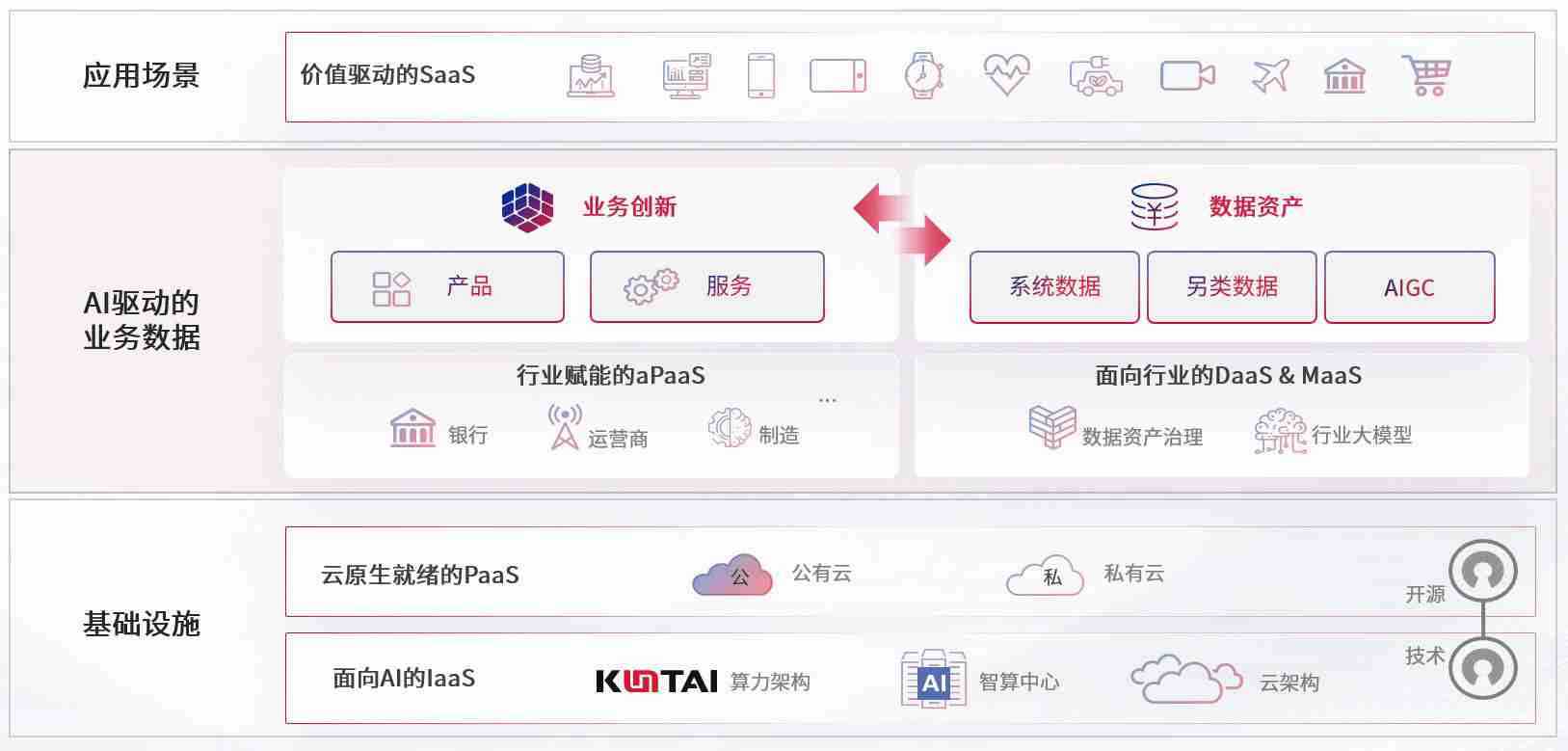 数字时代,,,围绕企业数字化转型的关键要素,,,,EZpay数码开创性的提出数云融合战略和技术体系框架,,,着力在云原生、、、数字原生、、、、AI原生和信创产业上架构产品和服务能力,,,,为处在不同数字化转型阶段的快消零售、、汽车、、金融、、、医疗、、政企、、、、教育、、、运营商等行业客户提供泛在的敏捷IT能力和融合的数据驱动能力,,构建跨界融合创新的数字业务场景和新业务模式,,,助力企业级客户建立面向未来的核心能力和竞争优势,,,全面推动社会的数字化、、、、智能化转型升级。。