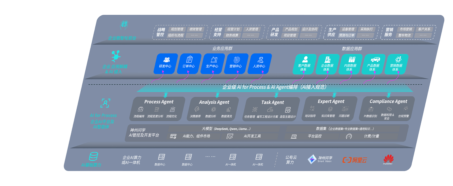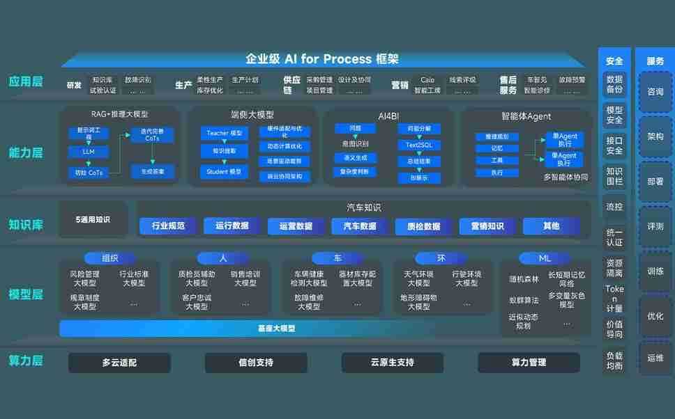 端到端的一站式AI工作空间深度融合了从企业战略规划到日常经营的全流程业务板块,,,,定向解决车企内部领域多、、部门多、、、链条长、、、、场景碎片化等难题,,,支持车企快速构建以AI为核心的生产力写作体系,,实现任务执行与AI能力的无缝集成与交互